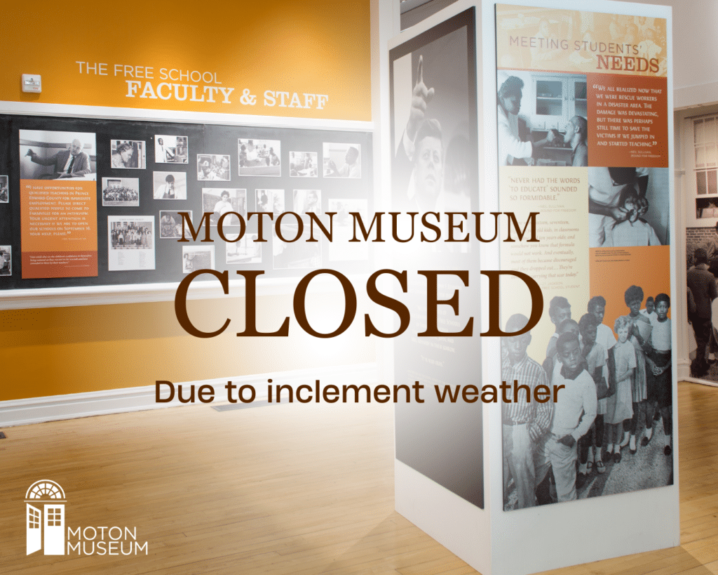 Due to severe weather expected in our area today, the Robert Russa Moton Museum will be closed Monday, March 16, 2026, out of an abundance of caution for the safety