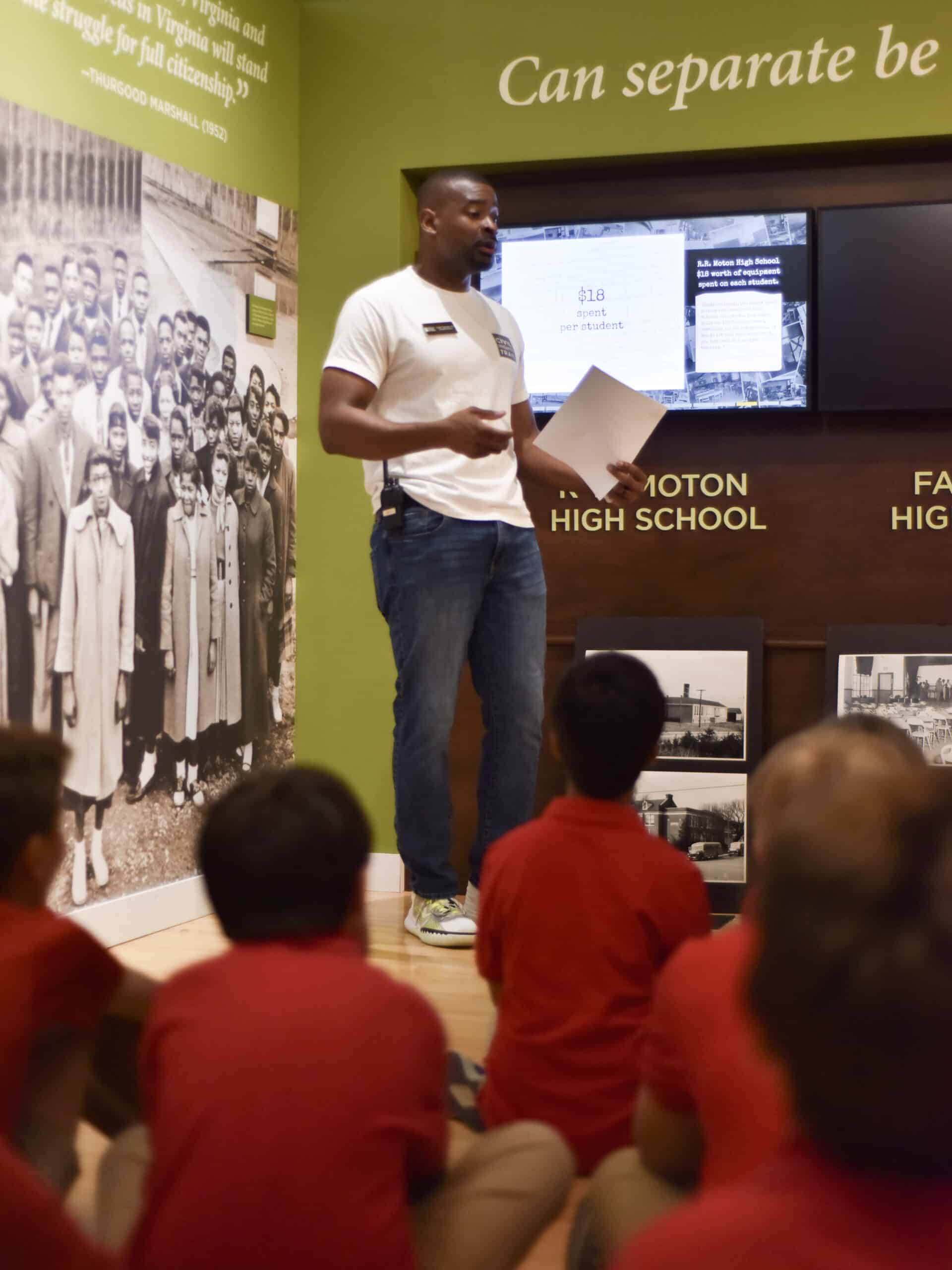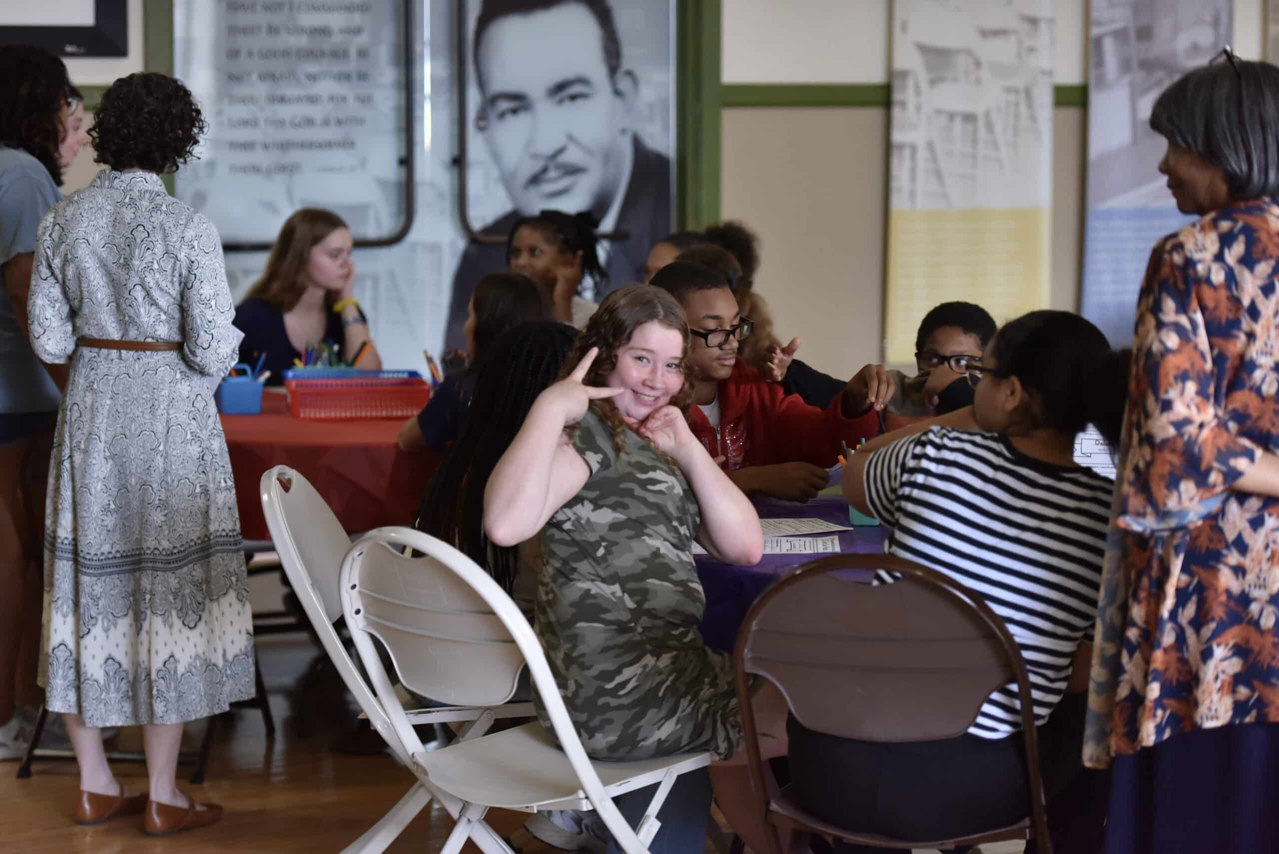 Throughout the day, students rotated through hands-on activities that blended exploration, history, art, literature, and the story of Civil Rights in Prince Edward County. Inside the Mobile Museum, they discovered Virginia’s journey from Revolution to Reconstruction to Civil Rights. In Moton’s own Children of Courage galleries, they stood in the very space where young people once demanded equality. And in the LCVA and VCBF reading and art stations, they found new ways to connect imagination with America’s ongoing pursuit of freedom and justice.